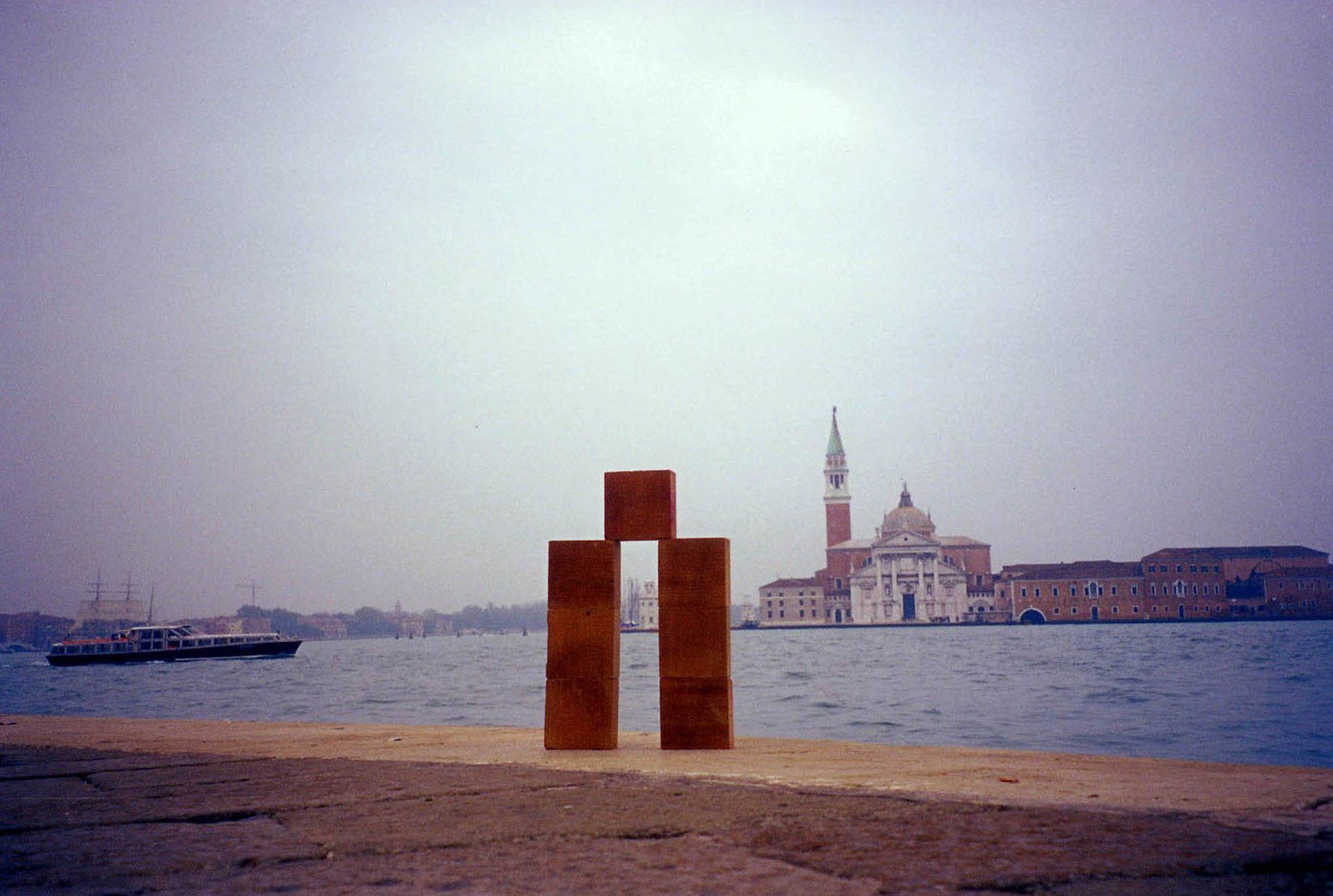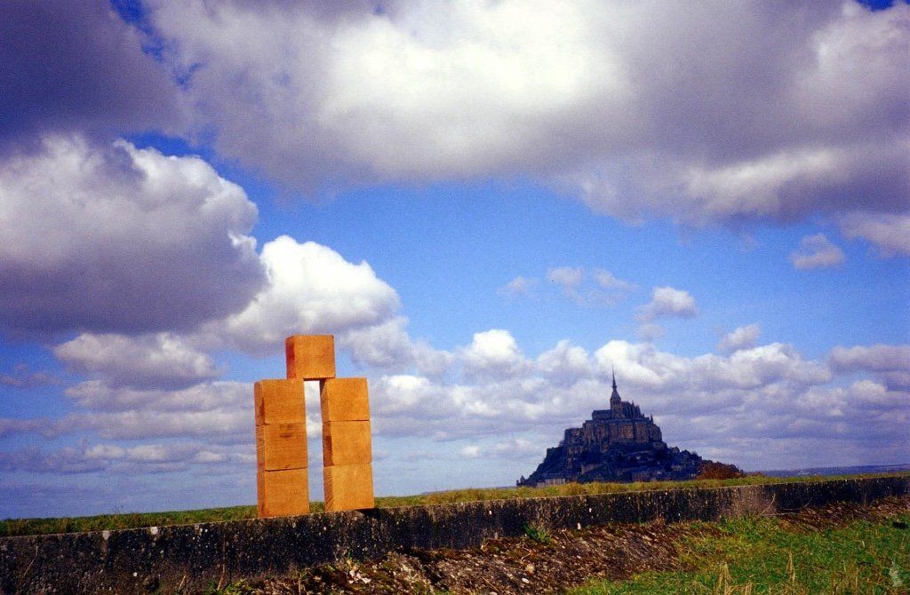 The Wandering Construction is an in situ sculpture / architecture. It appears temporarily in a landscape then disappears without leaving tracks. Barely installed, I photograph it, I leave it in place for a while, depending on my will and possibilities, then I take it away to install it elsewhere. From the beginning, its form has evolved into a great simplification. It is made up of seven identical cubes stacked, forming a door that opens, frames and dialogues with landscapes. The materials which constitute it change: natural (found in situ) or manufactured.